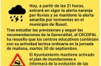 Decreto de alcaldía por las alertas meteorológicas del CCE y Aemet, nivel ROJO por lluvias y tormentas, el 10 de octubre desde las 00h hasta fin de la alerta: – Se cancelan...