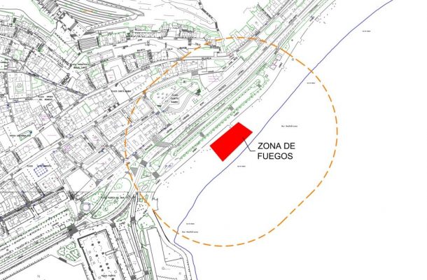 La zona de disparo estará situada en el propio arenal, a la altura del Paseíto de Ramiro y, según los cálculos estimados, se espera que sean unos 21.000 m² los que puedan ocupar los asistentes en la propia playa. A esta área se sumarán los espectadores que puedan presenciar los espectáculos pirotécnicos desde toda la franja litoral, que comprende desde el paseo de los Mártires de la Libertad hasta la zona de Puertoamor, en Entreplayas. Ésta es una idea que la propia concejala ha tenido en cuenta para el cambio de ubicación con respecto al pasado año.