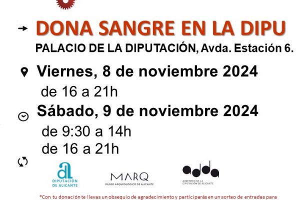 La Diputación de Alicante colabora con el Centro de Transfusión de la Comunidad Valenciana desde 2003, facilitando espacios como el MARQ o el Palacio Provincial para la realización de campañas de donación. Desde 2017 se organizan jornadas exclusivas para sus empleados, como la de mañana viernes por la mañana. Hasta la fecha, los trabajadores de la Diputación han realizado un total de 678 donaciones.