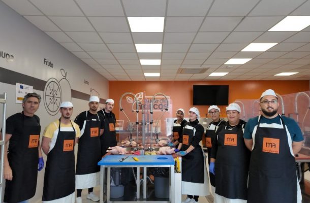 Un grupo de alumnos y alumnas se han formado en técnicas de carnicería en un curso impulsado por la Fundación Secretariado Gitano de Elche, en colaboración con Mercalicante. Desde ambas entidades, se ha promovido el desarrollo de esta formación con la intención de favorecer la inserción laboral de las personas participantes. El alumnado ha aprendido a dominar distintas técnicas de corte de carne y a elaborar productos cárnicos. La formación se ha llevado a cabo en el Aula de Frescos del clúster alimentario, y ha contado con una parte de contenidos teóricos y otra parte práctica, en la que el alumnado ha podido aplicar los conocimientos adquiridos.