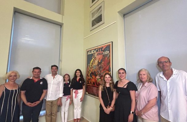 El alcalde, la concejala de Cultura y miembros de la corporación acompañan a Adriana Vico, Valentina Tárraga y a las damas a la exposición «Los orígenes de la fiesta de Hogueras (1928-1936)»