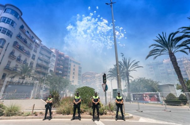 Ha llegado, a renglón seguido, el cuerpo de la mascletà compuesto por seis retenciones y los acompañamientos aéreos antes de un ‘terremoto’ con dos alturas y tres fases. Después de éste, y con los espectadores ya vibrando, ha comenzado el final aéreo. Éste se ha podido escuchar desde distintos puntos y se ha caracterizado por un impresionante crujido pirotécnico con carcasas de trueno. Todo ello, prólogo de una apoteosis en el que se han sucedido los truenos y meteoros de color hasta el gran golpe final. Si antes había estallado el conjunto de la mascletà, en ese momento ha sido la plaza la que ha explotado de júbilo en honor de Pirotecnia Ferrández. Mañana, en la cuarta sesión de este certamen, será el turno de Pirotecnia Alto Palancia, de Altura (Castellón), que debuta en Alicante.