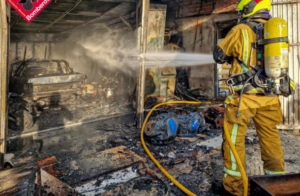 Los bomberos extinguen un incendio en un taller de pinturas en Busot
