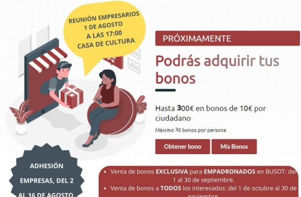 1. Primer periodo de compra de bonos solo para empadronados en Busot, del 1 al 30 de septiembre.