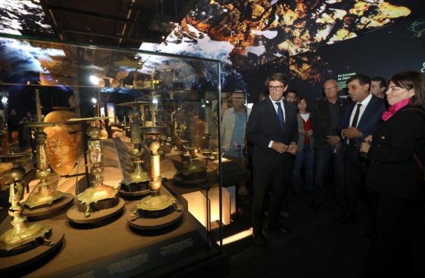 El diputado de Cultura, Juan de Dios Navarro, acompañado por la secretaria autonómica de Cultura, Pilar Tébar, y el alcalde de Dénia, Vicent Grimalt, ha inaugurado esta mañana la muestra compuesta por una cuidada selección de piezas de gran valor histórico procedentes de los fondos patrimoniales de Dénia y otros museos, que se podrán contemplar por primera vez en Alicante hasta el próximo mes de abril de 2026. Navarro ha destacado el trabajo de este “innovador proyecto que vuelve a situar al MARQ en primera línea con una novedosa presentación desde la dualidad mar y tierra, elementos esenciales y complementarios que llenan de significado la historia de Dénia y su territorio”.