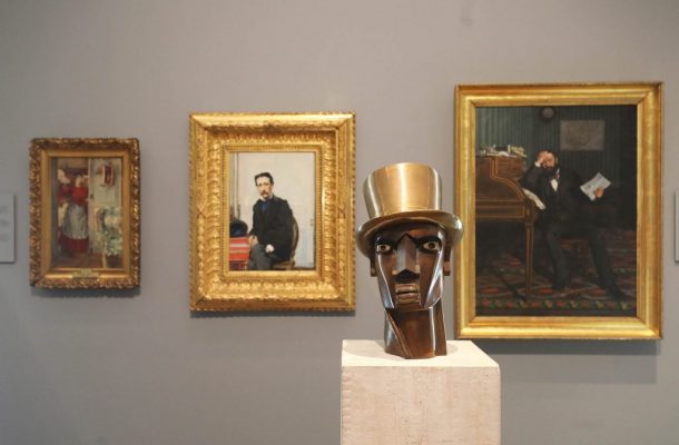 ‘Studiolo. Una mirada a la colección de Candela A. Soldevilla’ presenta, además, otras conexiones en forma de humor como la que establece ‘Dama con el dedo en la nariz’, de Gerard Mas (2014), artista cuya iconografía reinterpreta en clave pop obras clásicas, con ‘Reposición de Colón’, de Francisco Jover Casanova (1881); o la que se extrae de la simpática contraposición entre la obra ‘Chimperator’, de Daniel Sueiras (2018), que emplea un lenguaje artístico con referencias al arte clásico con un punto humorístico, y el busto del ilustre Étienne Geoffroy Saint-Hilaire, realizado por Julie Charpentier (1802).