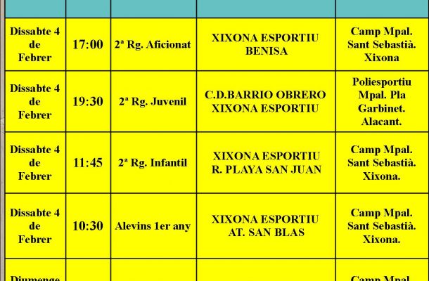 Cartelera Deportiva Xixona del 4 al 5 de febrero