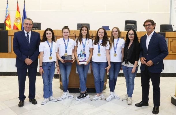 El presidente de la Diputación de Alicante, Toni Pérez, ha recibido hoy en el Palacio Provincial al Club Deportivo Algar de Elche tras alzarse con el Campeonato de España Copa Base de Conjuntos de Gimnasia Rítmica celebrado recientemente en Santander. Las integrantes del equipo juvenil Ana Ambit, Irene Navarro, Carla Vilches, Gema Pastor y Valentina Torrecilla, junto a su entrenadora, Titi Alberola, han recibido la felicitación del presidente en el Salón de Plenos del Palacio Provincial en un acto que también ha contado con la asistencia del diputado ilicitano Juan de Dios Navarro y familiares de las gimnastas. Toni Pérez ha valorado el esfuerzo y la dedicación de las deportistas y les ha deseado nuevos éxitos en el futuro.