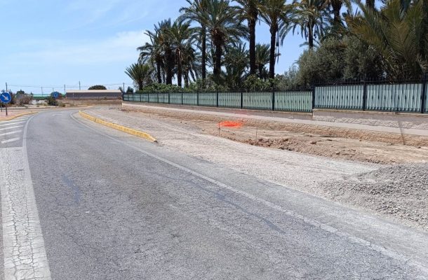 09-09-24.- La Diputación de Alicante trabaja estos días en las obras de mejora del firme e implementación de un itinerario ciclista en un nuevo tramo de la carretera de Asprillas (CV-854), en Elche, lo que permitirá completar el carril ciclo-peatonal previsto entre el casco urbano y el Club de Tenis de la localidad.