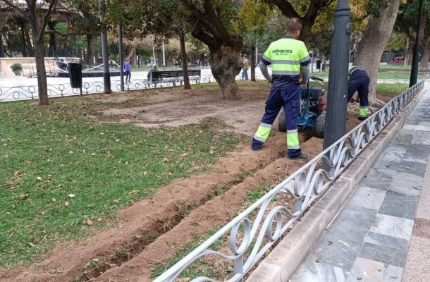 La Concejalía de Infraestructuras del Ayuntamiento de Orihuela, que dirige Víctor Valverde, ha comenzado las obras de conexión de la red secundaria de riego en la Glorieta Gabriel Miró de las parcelas existentes en la zona y busca solucionar las deficiencias que presentan las actuales instalaciones, que no habían sido remodeladas en muchos años. Dichas deficiencias están provocando pérdidas significativas de agua regenerada en las tuberías que abastecen y distribuyen el riego de los parterres y arbolado del jardín.
