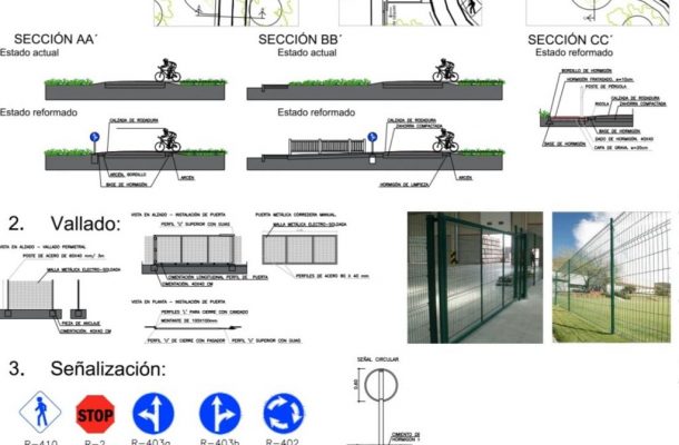 Además, se implementará un vallado perimetral metálico con accesos controlados mediante puertas correderas de seguridad, permitiendo el uso regulado del parque y evitando posibles actos vandálicos. Para mayor comodidad de los usuarios, se habilitarán zonas de descanso con pérgolas, bancos, papeleras y fuentes de agua potable, así como caminos peatonales que mejorarán la accesibilidad del recinto. Se construirá una pequeña rotonda dentro del circuito para mejorar la enseñanza de maniobras viales y se añadirán pasos de peatones debidamente señalizados.