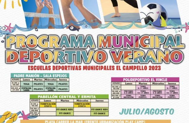 La Concejalía de Deportes de El Campello, que dirige Cristian Palomares (PP), comunica que ya se ha abierto el plazo para inscribirse en el programa de actividades deportivas de verano, de acuerdo a un interesante programa organizado por las Escuelas Deportivas Municipales.