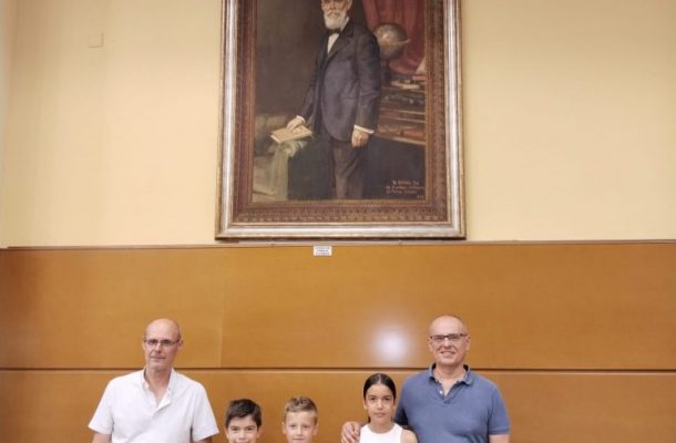 Acompañados por los bisnietos del humanista, Ignacio y Rafael Ramos Altamira, un grupo de alumnos y alumnas del colegio Rafael Altamira de El Campello visitaron ayer el despacho del también jurista y literato que se conserva en la sede de la Universidad de Alicante sita en el centro de la capital.