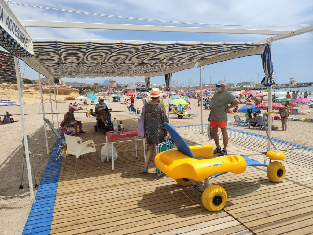Pese a los 23 kilómetros de litoral con los que cuenta el municipio, solo existen dos playas adaptadas, situadas en extremos opuestos, lo que obliga a muchos vecinos a desplazamientos imposibles bajo el sol. En la playa de Muchavista, además, únicamente se disponen de cuatro plazas de aparcamiento reservadas, claramente insuficientes.