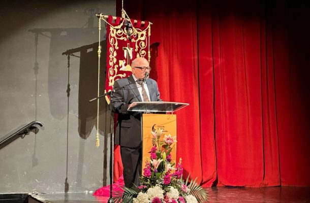 El acto fue conducido por el cofrade Jaime Pérez, y el primero en tomar la palabra fue el pregonero, un destacado miembro durante muchos años de la Cofradía del Santo Entierro, quien compartió su profunda conexión con la historia de esta institución. Con voz firme, recordó sus años de dedicación y servicio a la Cofradía, resaltando la importancia de mantener vivas las tradiciones que han unido a generaciones. Su discurso evocó momentos de fervor y devoción, recordando a los presentes que la Semana Santa no solo es un tiempo de reflexión, sino también un legado que debemos preservar.