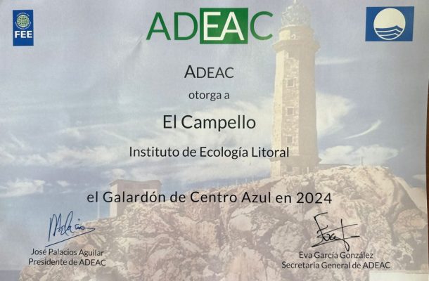 Se trata del diploma “Centro azul”, del que este año 2024 ha vuelto a ser merecedor el Instituto de Ecología Litoral, con sede El Campello. La Asociación de Educación Ambiental y del Consumidor (Adeac) le concede el reconocimiento por su trabajo de investigación y divulgación como entidad medioambiental destacada.