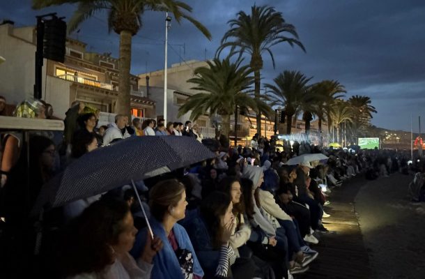 Se trata de un espectáculo único que se ha desarrollado siguiendo el guion establecido, con miles de personas apostadas en las gradas, murete, paseo y terrazas de hostelería para verlo presencialmente, que han aguantado pese a la lluvia que ha hecho acto de presencia en varias tandas. Mucho más público ha seguido el evento por «streaming» en directo, y por diversos canales de televisión que lo consideran el acto más vistoso y representativo de las fiestas campelleras.