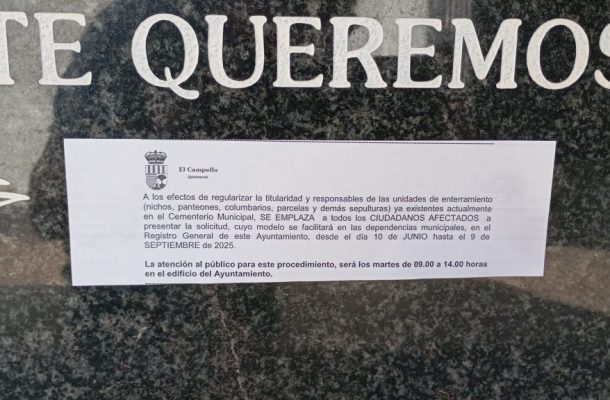 El bando del alcalde estará en puntos especialmente visibles en todos los edificios públicos y en el propio cementerio, en cada unidad de enterramiento, donde ya e puede ver el requerimiento. Los que regularicen la titularidad dispondrán de 50 años más de concesión.