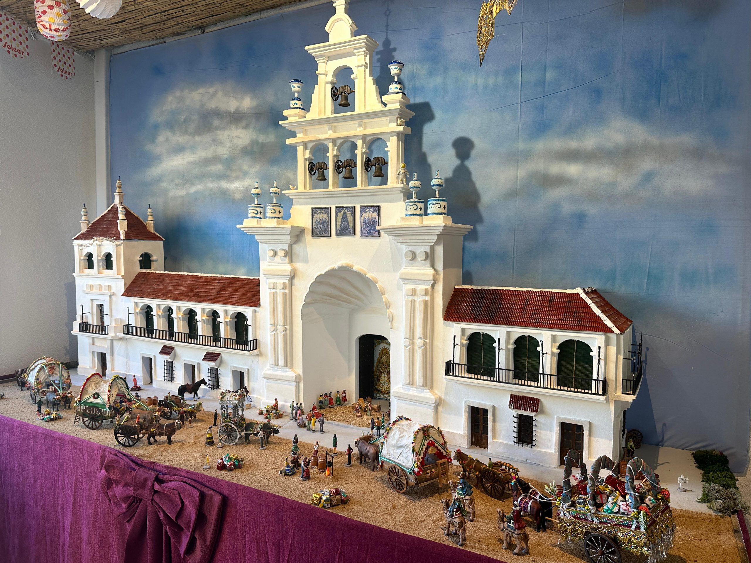 El presidente de la asociación, Pedro Claverías, explicó durante la inauguración que el Belén representaba la ermita de la aldea El Rocío, perteneciente al municipio onubense de Almonte.