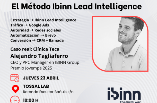 Si tienes una empresa de servicios y quieres conseguir clientes de forma constante y predecible, este evento es para ti. El 23 de abril a las 19:00h en Tossal Lab, de la mano de Alejandro Tagliaferro, CEO y PPC Manager en Ibinn Group, descubrirás un método práctico y probado para atraer oportunidades, convertirlas en clientes y escalar tu negocio con una estrategia clara.