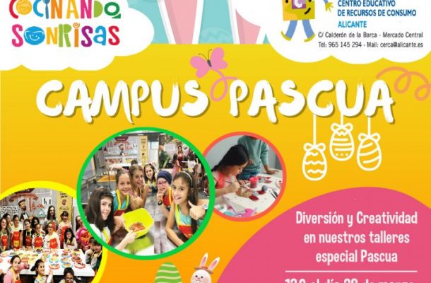 Alicante, 13 de marzo del 2024. El Ayuntamiento de Alicante abre el plazo de inscripción del Campus de Pascua ‘Cocinando sonrisas’ realizado junto con la asociación para la Difusión Educativa de la Nutrición, que tiene lugar del 2 al 5 de abril, en las instalaciones del Centro Educativo de Recursos de Consumo del Ayuntamiento de Alicante – Cerca –, y también se ha organizado un taller de cocina el 28 de marzo.