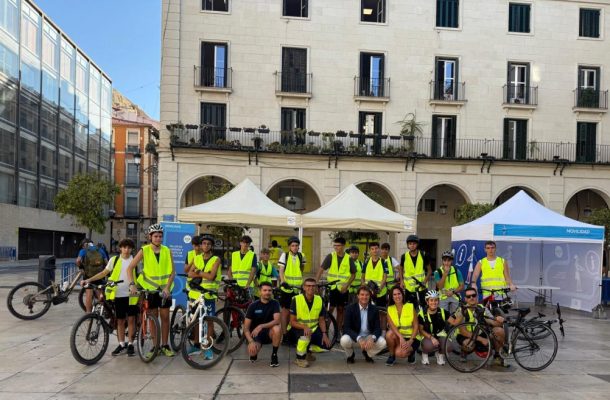 Un centenar de alumnos de educación secundaria de los IES Las Lomas, Mare Nostrum y Playa San Juan han participado este viernes en una nueva edición de la Biciescuela, una actividad enmarcada dentro de la Semana Europea de la Movilidad que se celebra en Alicante entre el 16 y 22 de septiembre. Los estudiantes se han familiarizado durante esta actividad con el manejo de la bicicleta realizando una ruta por la ciudad, que ha finalizado en la plaza del Ayuntamiento y que ha contado con colaboración de la Brigada Ciclista de la Policía Local.
