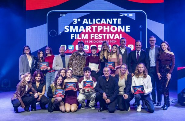 Alicante, 16 de diciembre de 2024. Alicante Smartphone Film Festival cerró su tercera edición este sábado con la gala de clausura. La gala del cine en corto hecho con móvil tuvo lugar en la Casa de la Música de las Cigarreras y finalizó con la entrega de los premios a los cortometrajes ganadores, de la mano de la presentadora y actriz alicantina Vanesa Romero. Se repartieron un total de 2.500 euros en premios en un certamen patrocinado por la Agencia Local de Desarrollo del Ayuntamiento de Alicante ‘Impulsalicante’ junto a la Diputación y el Hospital General de Alicante.