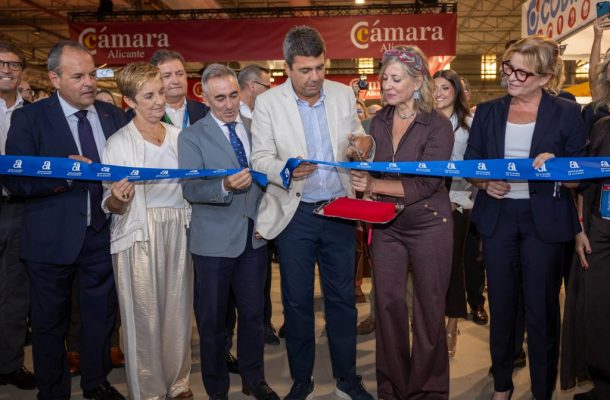 Alicante, 3 de octubre de 2025. La inauguración de Alicante Gastronómica hoy, con el tradicional corte de la cinta que han realizado el presidente de la Generalitat, Carlos Mazón, la vicepresidenta de la Diputación Provincial, Ana Serna, el presidente de la Cámara de Comercio, Carlos Baño y la presidenta de Alicante Gastronómica, Gema Amor, ha convertido a la provincia de Alicante en el epicentro de la alta gastronomía y de toda la oferta de producto concentrado en los dos pabellones de IFA Firalacant durante los próximos cuatro días. La cita, que se extenderá hasta el lunes 6 de octubre, prevé superar la cifra de visitantes de la pasada edición, que alcanzó las 75.000 personas. Esta misma mañana, antes de la inauguración oficial, los diez participantes que optan este año a ganar la II Edición del Premio Internacional de Alta Pastelería Paco Torreblanca a la Mejor Tarta de Chocolate han comenzado a trabajar ante el jurado selecto de este concurso. La previsión es conocer el fallo esta tarde sobre las 18.00 horas.