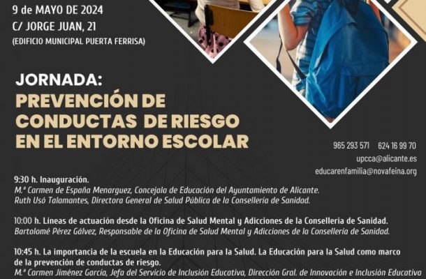 La jornada tendrá lugar en el edificio municipal de Puerta Ferrisa, entre las 9.30 y las 13.00 horas. La inauguración correrá a cargo de la concejala de Educación del Ayuntamiento de Alicante, Mari Carmen de España y la directora de Salud Pública de la conselleria de Sanidad, Ruth Usó.