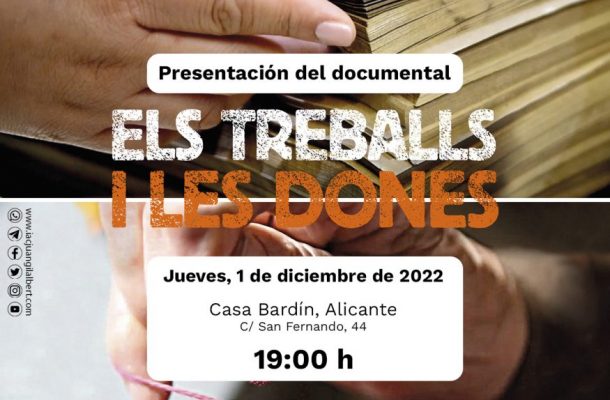 Por otra parte, la Casa Bardin acogerá mañana jueves, a las 19:00 horas, la presentación del documental Els treballs i les dones del Museu de la Paraula de Banyeres de Mariola. Un trabajo que, a lo largo de 45 minutos, pone voz a las mujeres de esta localidad para visibilizar su trabajo al frente de sus casas y familias en tiempos complicados en los que debían dedicarse también a los negocios familiares y, en muchos casos, abandonar la escuela.