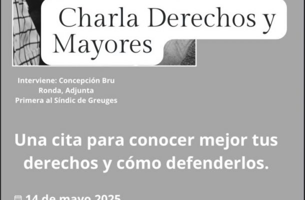 Se trata de una charla que, bajo el título “Derechos y mayores”, organizan la concejalía de Bienestar Social y Familia que dirige Maricarmen Alemañ, y el Síndic de Greuges de la Comunidad Valenciana, que impartirá Concepción Bru Ronda, adjunta al Síndic.