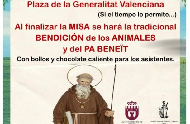 El próximo domingo día 22 a las 11:30h se celebrará la eucaristía en la Plaza de la Generalitat en honor a Sant Antoni Abad. Al término de la misa serán bendecidos los animales. También se bendecirán bollos y «El Pa Beneït» tendremos chocolate. Pásate con tus mascotas.