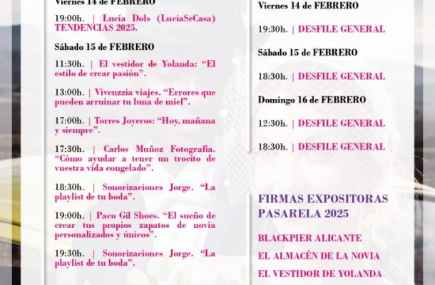 • Del 14 al 16 de febrero, IFA – Fira Alacant reunirá a las mejores firmas y profesionales del sector nupcial en una nueva edición de Firanovios. Uno de los momentos más esperados será la Pasarela Firanovios, el desfile general de moda nupcial.