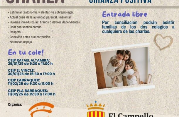 La Concejalía de Educación de El Campello programa dos jornadas formativas en los colegios públicos sobre “Crianza respetuosa”