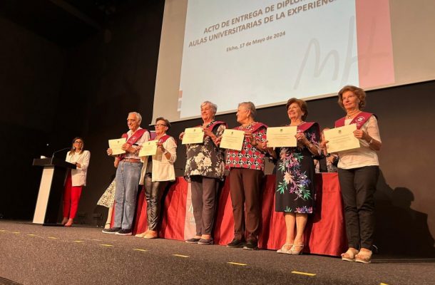 La Universidad Miguel Hernández celebra el acto de entrega de diplomas de las “aulas universitarias de la experiencia”, en las que han participado campelleros y campelleras