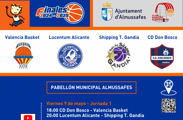 La Fase Final Cadete Masculino Autonómico se disputará en el Pabellón Municipal de Almussafes con la participación de Valencia Basket, Lucentum Alicante, Shipping Transport UPB Gandia y CD Don Bosco.