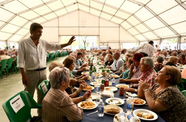 El presidente de la Diputación de Alicante, Carlos Mazón, se ha desplazado este mediodía a Pilar de la Horadada, tras asistir a la salida de La Vuelta Femenina que ha tenido lugar en Torrevieja, para visitar la X Feria de Sevillanas de la localidad, donde ha tenido la oportunidad de compartir un almuerzo de convivencia con los mayores del municipio. Acompañado por el alcalde, José Mª Pérez Sánchez, Mazón ha recorrido algunas de las casetas de este certamen que se celebra coincidiendo con la Feria de Abril de Sevilla, como el de la Asociación de Amas de Casa de Pilar de la Horadada. Asimismo, el dirigente alicantino ha compartido mesa y mantel con los jubilados del municipio y ha disfrutado de algunas de las actuaciones programadas.