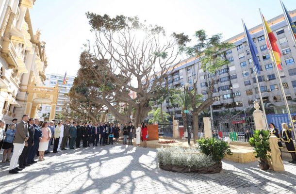 A continuación, la comitiva, presidida por Toni Pérez, al que han acompañado el decano del Cuerpo Consular de Alicante, Bojan Dozet, el diputado de Residentes Europeos, Juan de Dios Navarro, la delegada del Consell en Alicante, Agustina Esteve, representantes de la Entidad Equipo Europa, diputados provinciales y autonómicos, autoridades civiles y militares, alcaldes y estudiantes del colegio El Valle, se ha desplazado al Salón de Plenos.