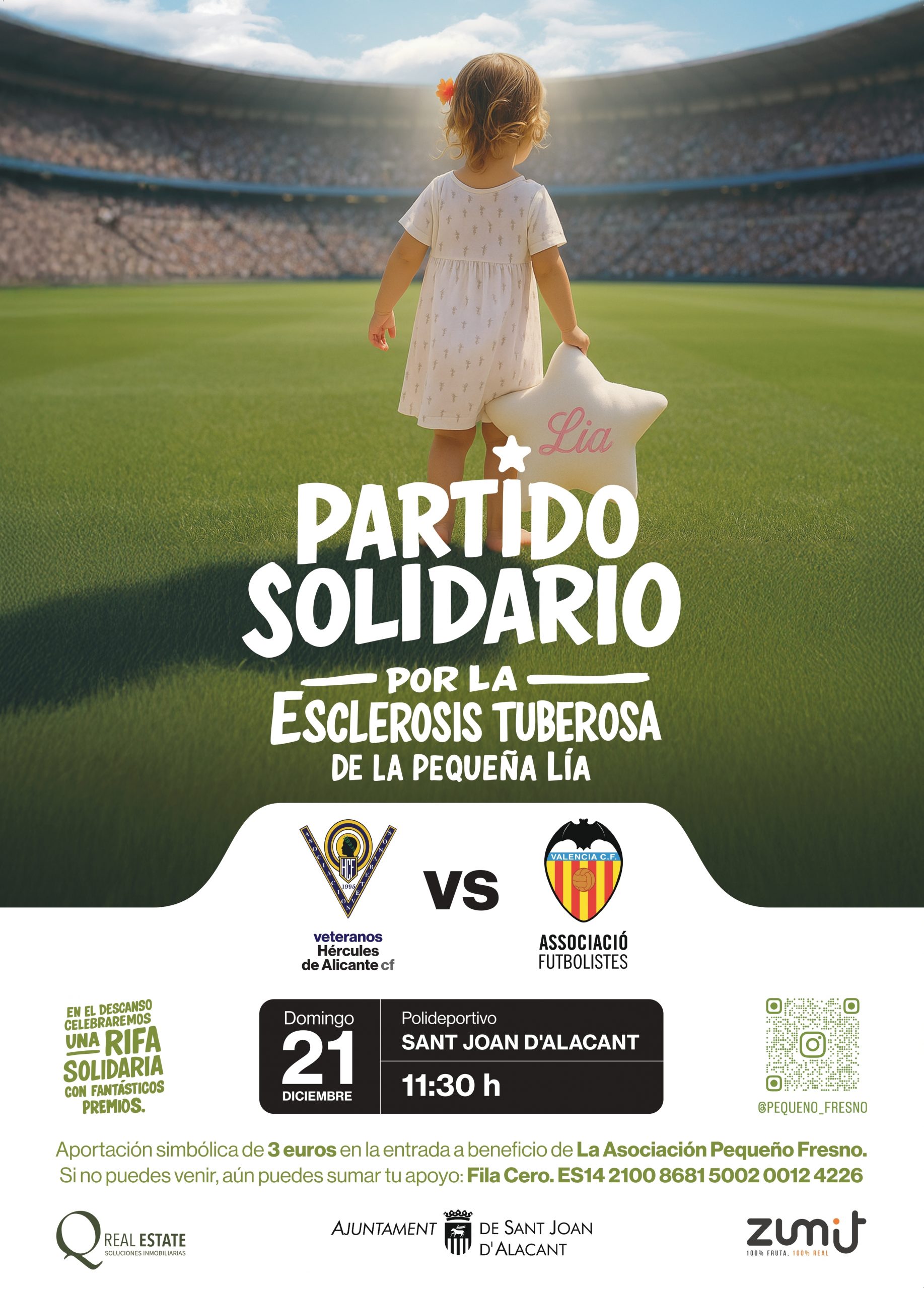 El encuentro enfrentará a las asociaciones de futbolistas veteranos del Hércules CF y del Valencia CF, quienes participarán de manera altruista para recaudar fondos destinados a Lía, una niña de dos años afectada por esta enfermedad. Lía padece tumores en el cerebro que le provocan epilepsia refractaria, una condición que requiere terapias continuas, exámenes médicos especializados y posibles intervenciones quirúrgicas, con costes elevados que su familia no puede asumir por completo.
