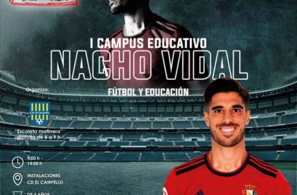 El futbolista campellero Nacho Vidal, actualmente lateral derecho del Club Atlético Osasuna, impartirá un campus que combinará fútbol y educación en valores entre los días 27 de junio y 15 de julio, en las instalaciones del polideportivo El Vincle, organizado por el Club Deportivo El Campello y con la colaboración de la concejalía de Deportes que dirige Cristian Palomares (PP).
