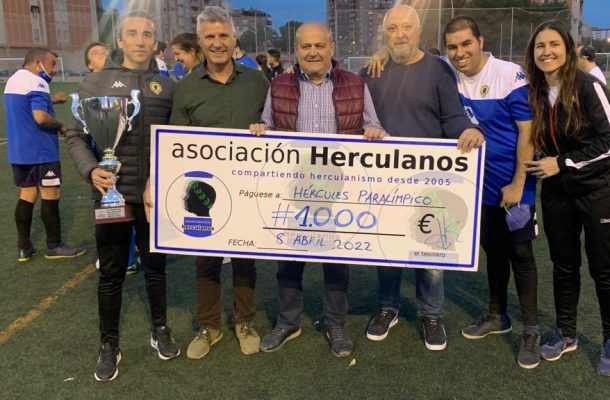 La Asociación Herculanos hace entrega al Hércules Paralímpico del primer cheque de los beneficios de la venta de «Azul, Blanco y Negro»