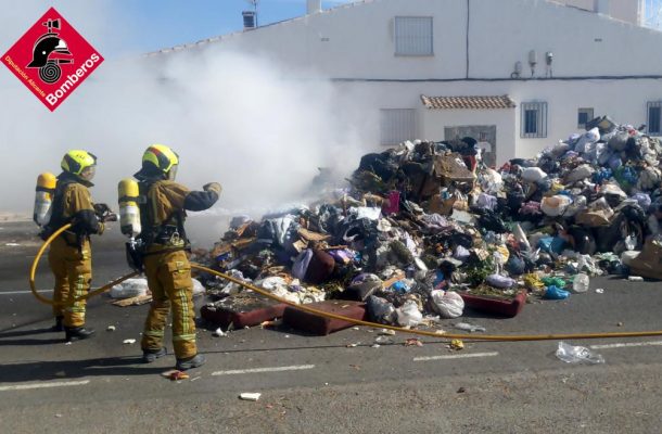 Incendio de un camión de residuos, en la Calle Purcel, cruce con Calle Grandos en Torrevieja, que al detectar que se incendió su carga tuvo que vaciarla a la vía pública para evitar que ardiera el camión. Extinguieron con agua y rematado con la ayuda de una pala que ha proporcionado la empresa de limpieza viaria de Torrevieja. Ha sido necesaria la intervención de 4 bomberos del parque de bomberos de Torrevieja.