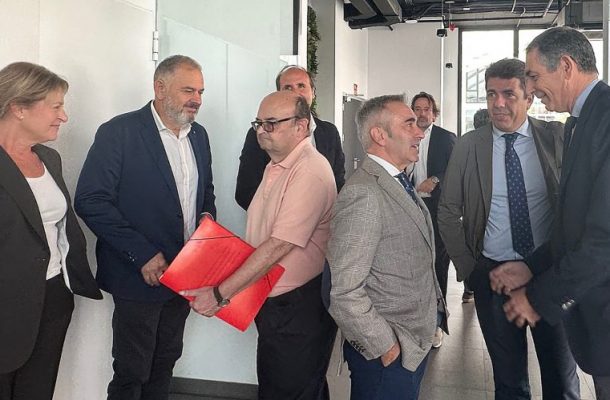 El edificio del Distrito Digital en el Muelle 5 del Puerto de Alicante ha sido el escenario de este encuentro multilateral, presidido por el president de la Generalitat, Carlos Mazón, en el que también han participado representantes del Sindicado Central de Regantes del Acueducto Tajo-Segura (SCRATS).