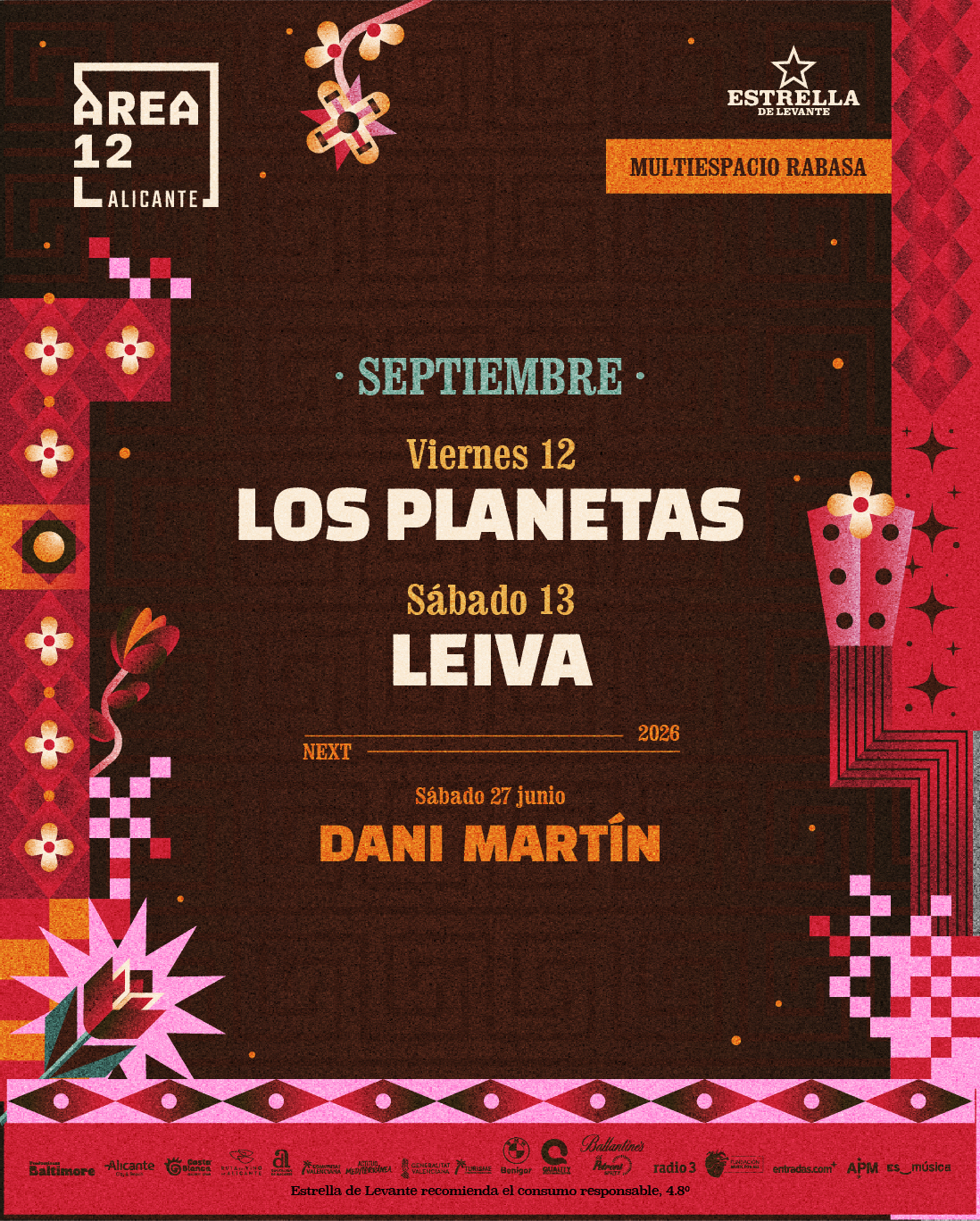 Alicante, 10 de septiembre de 2025. Área 12 encara este fin de semana la recta final de su cuarta edición con dos citas imprescindibles: el viernes, Los Planetas, y el sábado, Leiva, en un cierre de temporada que confirma a Alicante como uno de los grandes destinos culturales y musicales del país.