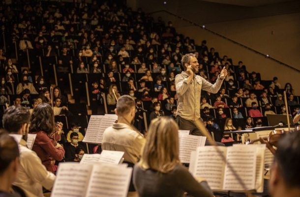 El ensayo ofrecido hoy ha sido conducido por el director de la orquesta alicantina, Josep Vicent, con la presencia de alumnado de los municipios de San Vicente del Raspeig, Sant Joan d’Alacant, Mutxamel, Pego, Elche, Orihuela, Crevillent y Alicante. Por su parte, Josep Vicent ha manifestado que “es una gran emoción ver más de mil de niños en pie entusiasmados siguiendo la música de grandes compositores”. El programa pedagógico continuará el próximo curso escolar de la mano de la nueva temporada 2022-23.