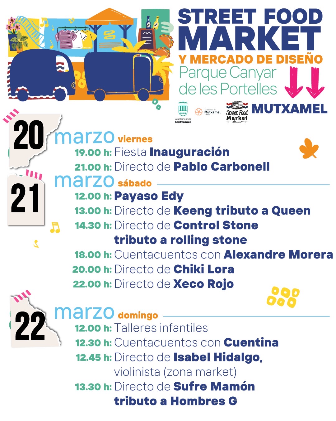 “Estamos muy contentos de que Street Food Market recale en Mutxamel. Durante tres días nuestro Parque Municipal se volverá a convertir en un punto de encuentro provincial donde disfrutar del ocio y la música. La programación del fin de semana es tan extensa y variada que nos va a permitir disfrutar de actividades y propuestas para toda la familia”, ha señalado.