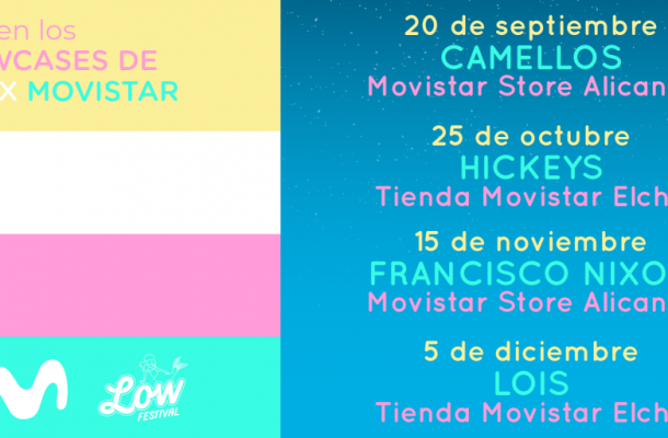 Elche y Alicante se volverán a llenar de música esta temporada de otoño-invierno como antesala para la celebración de Low Festival 2020. Tras el éxito de la última gira de Showcases de Low x Movistar organizados en Alicante y Elche, Movistar y Low Festival vuelven a unirse para organizar un nuevo ciclo de cuatro conciertos gratuitos de aforo limitado.