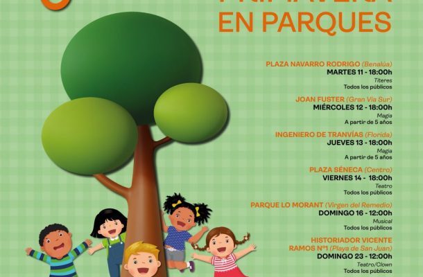 Alicante, 7 de abril de 2023. La Concejalía de Cultura ha presentado una nueva edición del programa ‘Primavera en Parques’, que se desarrollará entre el 11 y el 23 de abril con actividades de magia, teatro o títeres para toda la familia en diferentes plazas y parques de la ciudad.