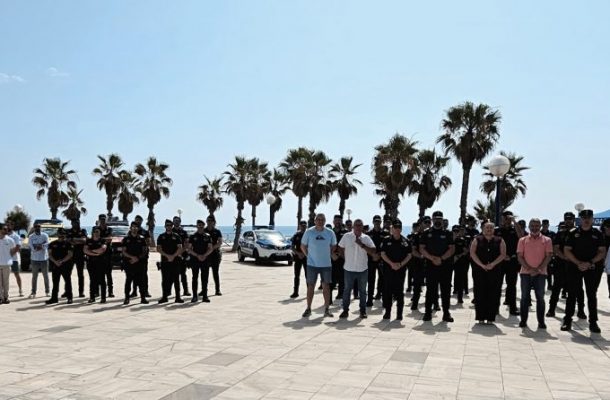 La explanada de Playa Flamenca ha acogido este martes la presentación del dispositivo especial de seguridad que el Ayuntamiento de Orihuela pondrá en marcha durante la campaña de verano en la costa. El objetivo es garantizar la seguridad de residentes y visitantes en una época del año en la que la población en esta zona se multiplica. El acto ha contado con la presencia del alcalde de Orihuela, Pepe Vegara, junto a los concejales Mónica Pastor, Seguridad Ciudadana, Víctor Valverde, Protección Civil y Emergencias, y Manuel Mestre, Costa, así como el intendente de la Policía Local, Rubén Selma.