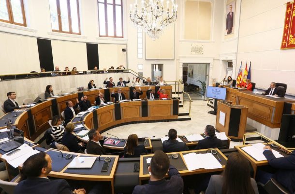 07-02-24.- El pleno de la Diputación de Alicante ha aprobado hoy el presupuesto de la institución provincial para 2024, que se eleva a 295 millones de euros, un 4,1% más que el ejercicio anterior, convirtiéndose en el más alto de su historia. Las cuentas, que refuerzan la apuesta por el municipalismo y el gasto social, han salido adelante con la mayoría absoluta del Grupo Popular y el voto en contra de los grupos PSOE, Vox y Compromís.
